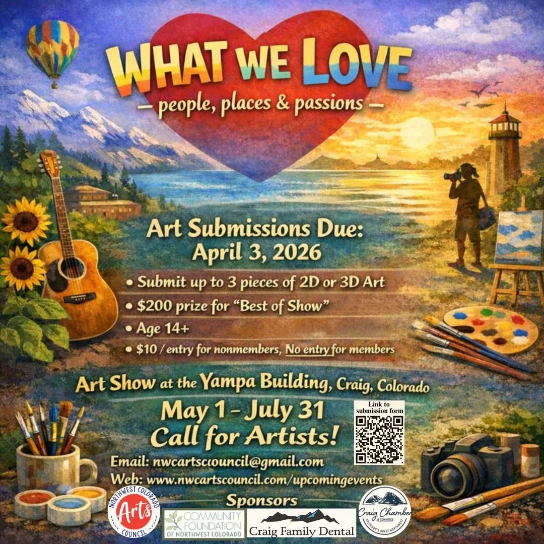 Where: Art can be dropped off that the front desk of the Yampa Building, Mon - Fri 9am-5pm.
